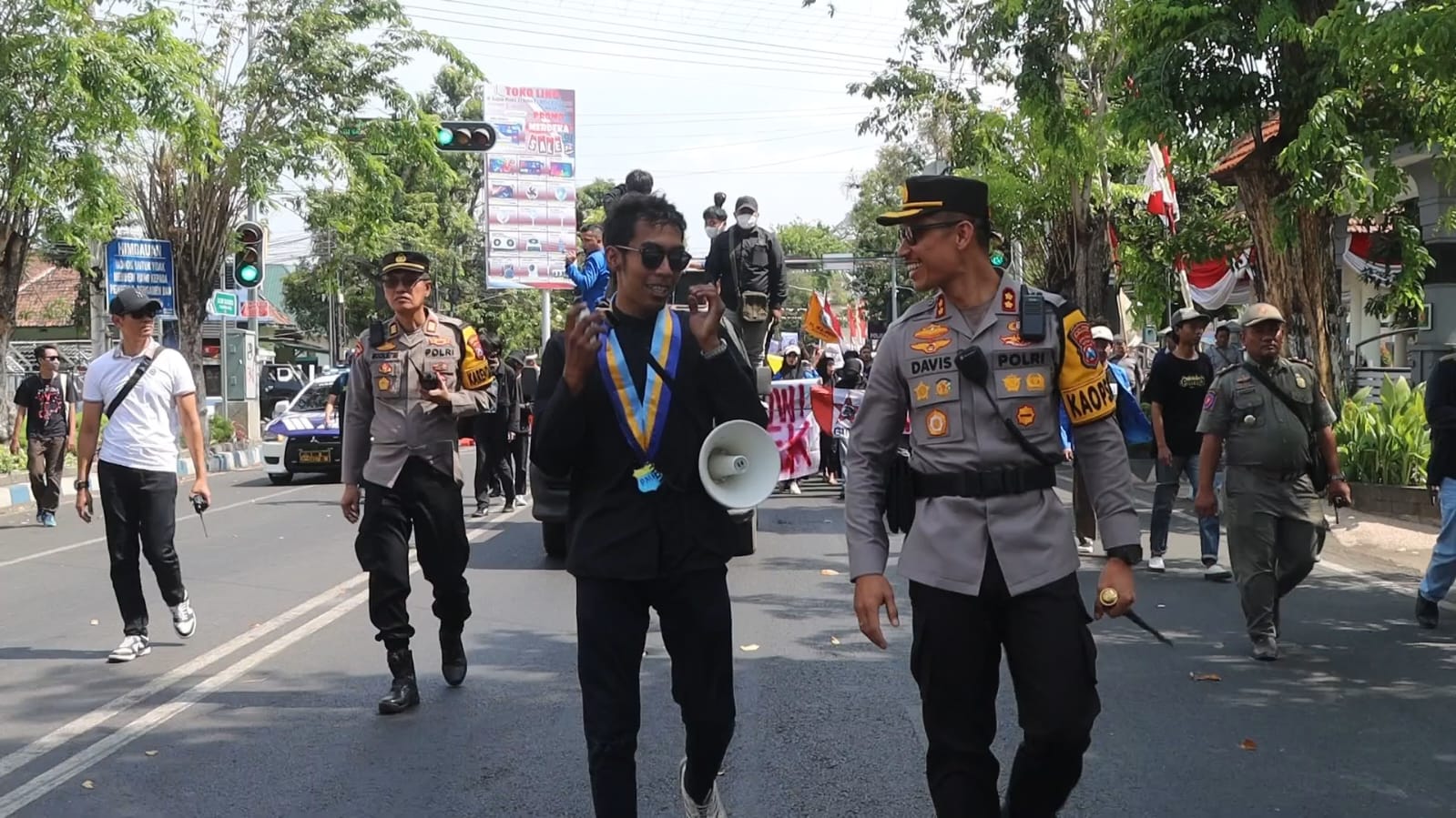 Dengan sigap, puluhan personel dari Polres Pasuruan Kota diterjunkan untuk mengamankan jalannya unjuk rasa. Memastikan setiap tahapan kegiatan berjalan lancar dan kondusif, AKBP Davis Busin Siswara, S.I.K., M.I.Kom., memonitor langsung situasi di lapangan bersama Pejabat Utama Polres Pasuruan Kota. Namun, yang membuat pengamanan kali ini berbeda adalah pendekatan humanis yang ditunjukkan oleh Polisi Wanita (Polwan) dari Polres Pasuruan Kota.