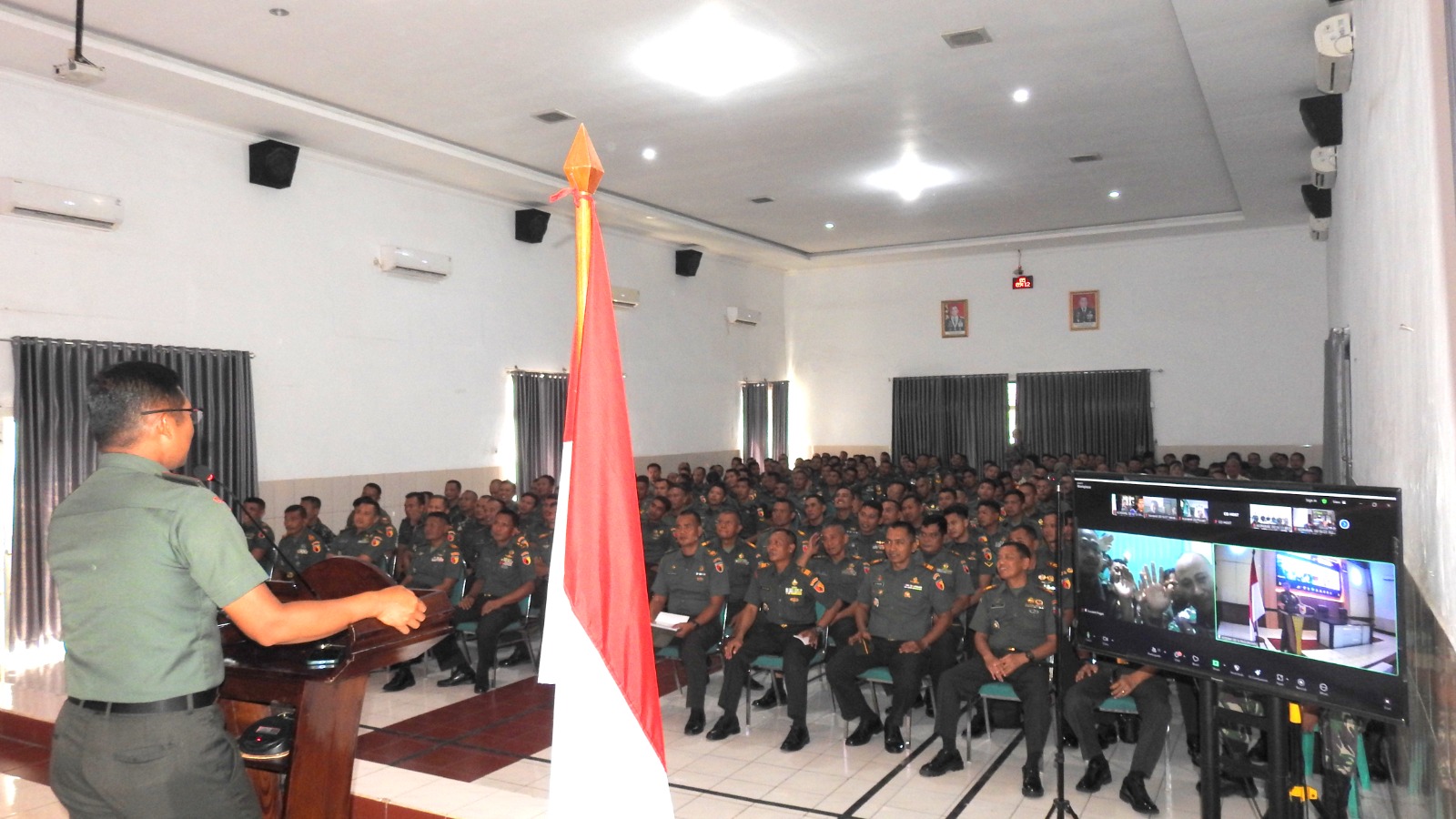 Komandan Kodim 0819 Pasuruan, Letkol Arh Noor Iskak, S.T., menyampaikan arahan kepada seluruh anggota dan Pegawai Negeri Sipil (PNS) Kodim 0819 Pasuruan dalam kegiatan Jam Komandan yang berlangsung di Aula Makodim, Jalan Veteran No. 05, Kota Pasuruan. Kamis (05/12/24).