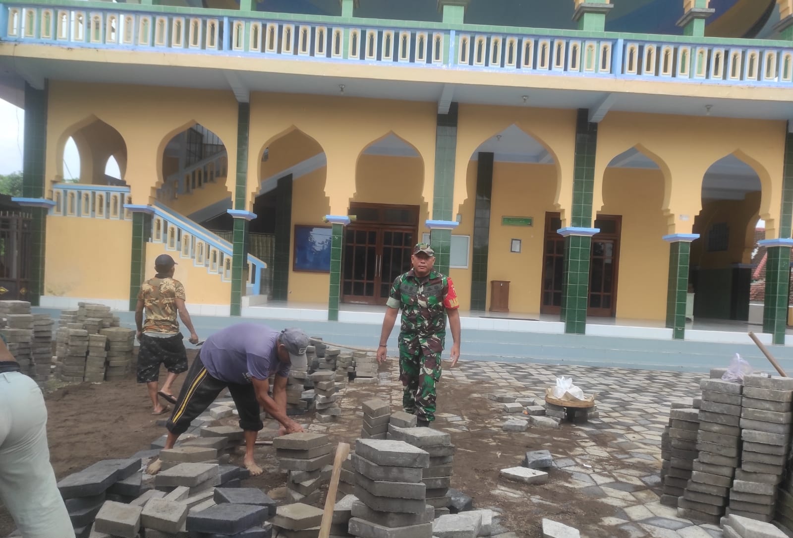 Guna menjaga keakraban dan kedekatan dengan warga, Babinsa Desa Linggo, Sertu Janjianto anggota Koramil 0819/04 Kejayan bersama pemerintah desa, takmir masjid, dan warga menggelar kegiatan kerja bakti memperbaiki fasilitas Masjid Baiturrahman di Kecamatan Kejayan, Kabupaten Pasuruan. Kegiatan ini merupakan bentuk nyata sinergi antara TNI, pemerintah desa, dan masyarakat dalam membangun sarana ibadah yang lebih nyaman dan representatif bagi warga. Kamis (23/1/25).