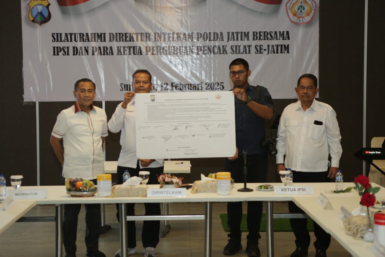 Polda Jawa Timur melalui Direktorat Intelejen dan Keamanan (Ditintelkam) menggelar silaturahmi bersama para ketua pencak silat se Provinsi Jawa Timur.