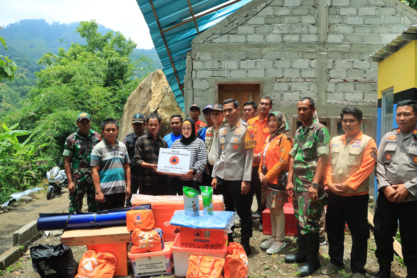 Kehadiran Kapolres Ponorogo dan istri Bupati Ponorogo di lokasi bencana memberikan semangat bagi warga setempat.