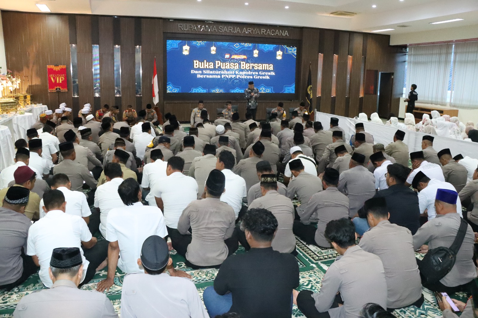 Dalam suasana penuh kebersamaan dan kehangatan bulan suci Ramadan 1446 H, Polres Gresik menggelar kegiatan Buka Bersama dan Silaturahmi yang berlangsung di Aula Rupatama SAR Polres Gresik, Kecamatan Kebomas, Kabupaten Gresik. Senin (03-03-2025)