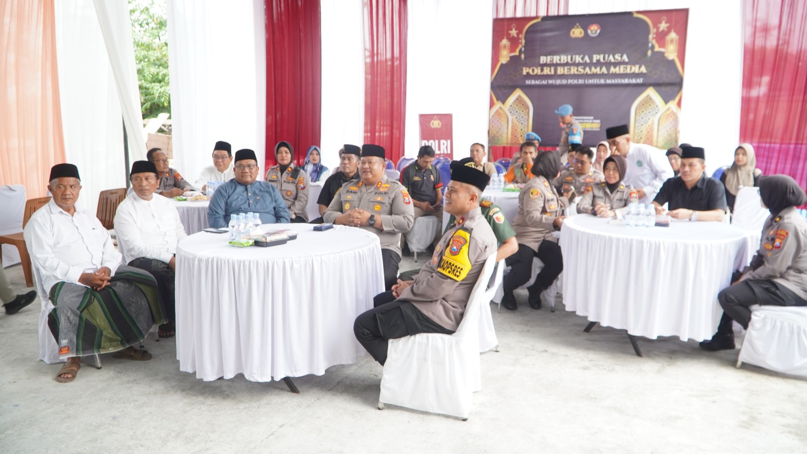 Suasana buka bersama berlangsung hangat dan penuh keakraban, mencerminkan keharmonisan antara aparat kepolisian dan media dalam menjaga stabilitas daerah.