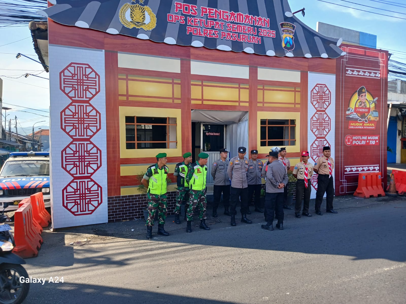 Serka Sobirin bersama tim Pam Terpadu melaksanakan tugas di Pos Pam Persimpangan Jalan Raya Pasar Purwosari, Kecamatan Purwosari, Kabupaten Pasuruan. Kegiatan ini bertujuan untuk memastikan kelancaran arus lalu lintas serta memberikan rasa aman dan nyaman kepada masyarakat yang merayakan Idul Fitri 1446 H/2025.