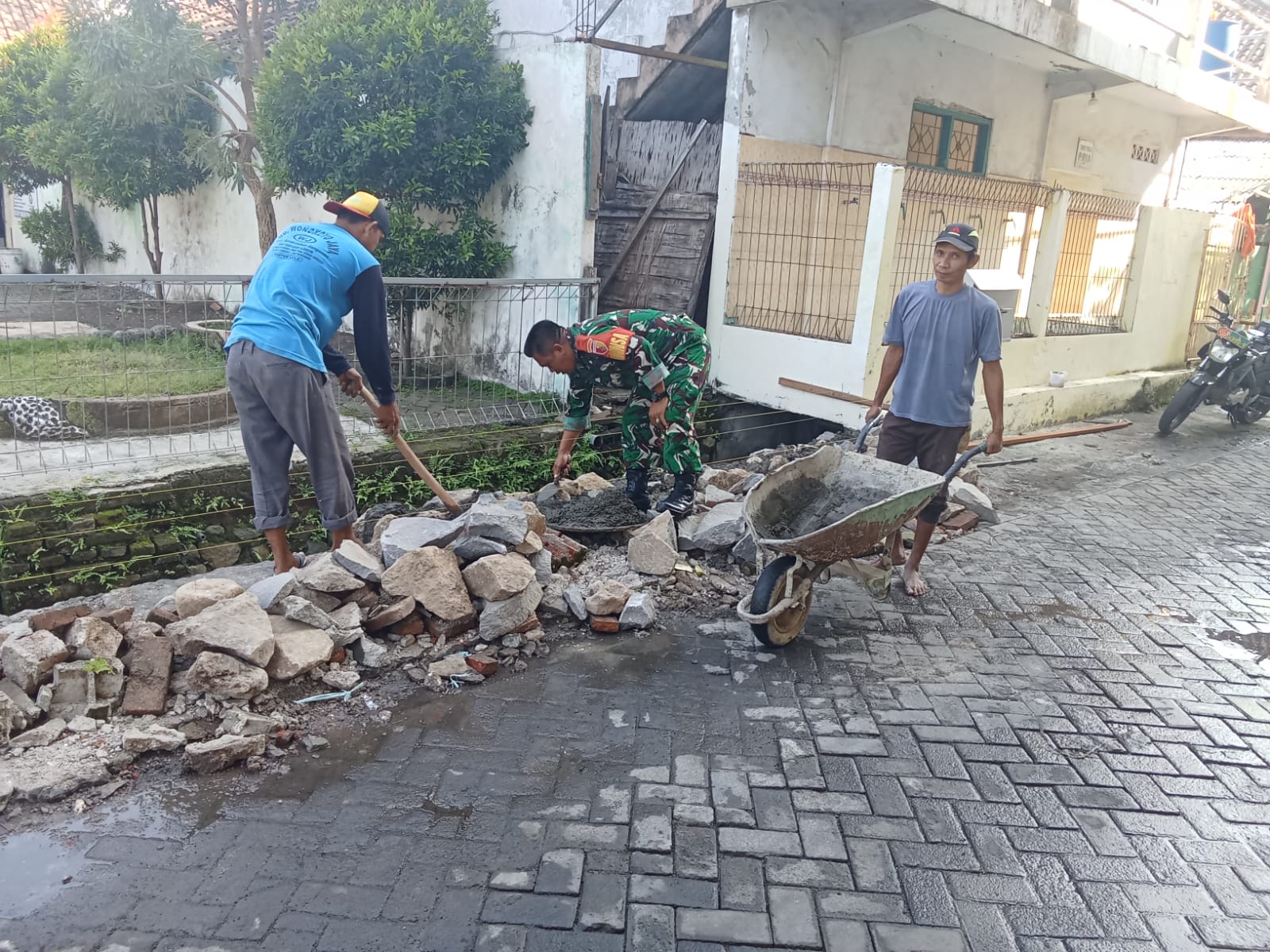 Wujudkan Lingkungan yang Nyaman, Babinsa dan Warga Bangun Saluran Drainase